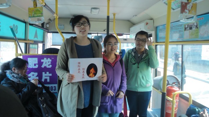 培训与演练完毕,一班同学分成四队分别登上公交车,向乘客普及防火知识和讲解火场逃生的技巧,车上乘客对他们热情细致的讲解表示了充分的肯定。活动最后一班班长对此次活动进行总结,他强调一定要将此项活动坚持下去,将极速赛车