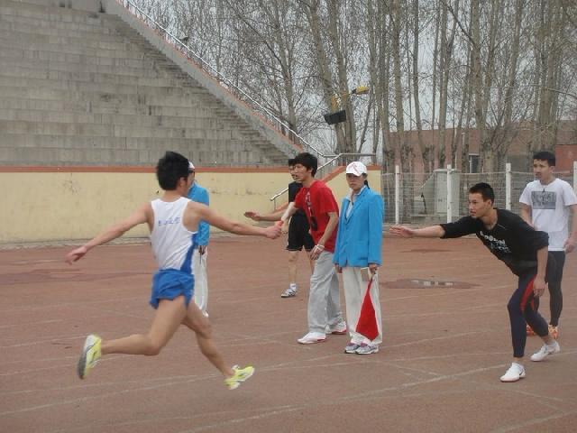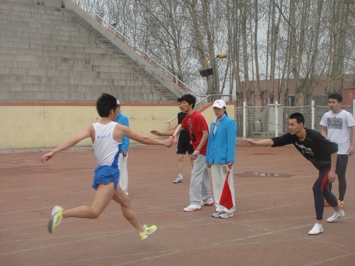 4月21日上午,运动会8×100预赛在南区体育场举行,极速赛车
