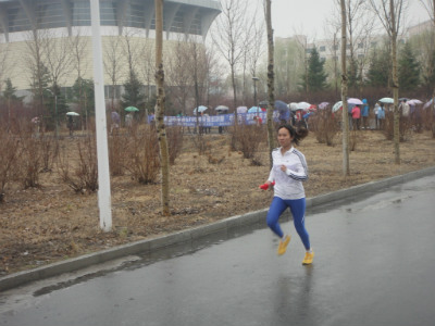 拉拉队们也撑伞摇旗丝毫没被天气影响了热情。两点半,比赛正式开始,一声号响,各院运动员都奋力前冲,如离弦的箭一般直奔目标,极速赛车