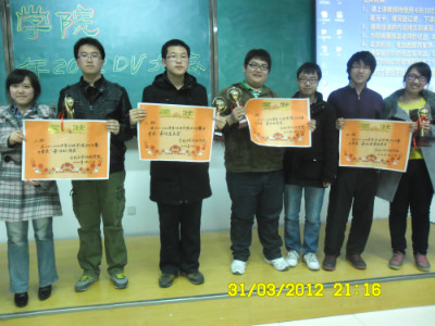 大赛由王恩远、李亚楠主持,团委副书记马远俊、赵昊骏、学生会主席叶博及09、10、11届主要学生干部担任了本次比赛的评委。在幽默的开场后各班展播了参赛作品,分别是一班的《花季》、二班的《Where?Go!》、三班的《老大的幸福》和四班的《独自错过》。各班的作品构思巧妙、表达细腻,独具匠心的剧情和真诚的演绎生动展现了同学们的飞扬青春,穿插其中的趣味游戏更为比赛增添了轻松欢乐。最终经过激烈角逐,共产生四项团体奖项DD一班作品视角独特、选材新颖,获最佳创意奖;二班作品内涵丰富、贴近现实,获最佳剧情奖;三班作品道具精致、取景优美,获最佳道具奖;四班作品画面流畅、场景唯美,获最佳视觉效果奖。此外,大赛还评选出了最佳男、女主角,最佳男、女配角,最佳导演、剪辑、编剧奖以及最佳PPT展示奖等八项个人奖项。最后,团委副书记马远俊对比赛进行了总结,在肯定同学们积极参与的同时对作品质量提出了更高要求。