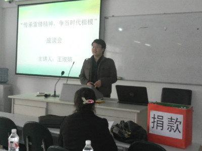 “人的生命是有限的,为人民服务是无限的,我要把有限的生命投入到无限的为人民服务中去…”在观看了雷锋同志的生平影像之后,同学们用读日记传箴言的方式来感受并传承雷锋精神。在随后的座谈会上,时代楷模——王淑娟院长讲述了她从一个自闭症儿童的母亲到自闭症康复机构院长的感人故事。她说,是无私的母爱和热心助人的爱心让她决心帮助更多的自闭症儿童家庭走出困境。随后,在场行政学子自发为自闭症儿童筹集了一笔善款,并由史老师亲手交与王院长。