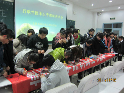 于海洋老师围绕“学生自治:一个准正式组织如何成长”这一命题展开了细致深刻的讲解。首先,于老师从组织行为学的角度阐明了学生组织的核心应是预算,预算产生竞争、明确权责、指引方向。随后,于老师对准正式组织的含义进行了界定,并肯定了学生组织的中介和桥梁作用。最后,于老师对学生组织所面临的问题进行了详细分析并提出了相应的解决方案。从理论到实际的深入剖析令学生干部们受益匪浅。培训活动在学生签字仪式中圆满结束。