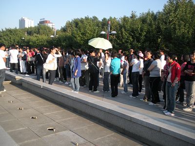 团委组织09级新生参观中心校区,活动的集合地点为体育馆。