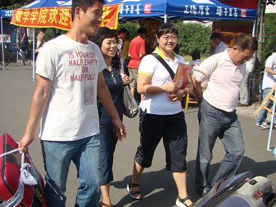 的工作人员和志愿者,不辞辛劳地为师弟师妹搬送行李,带师弟师妹购买生活用品,只要是师弟师妹的要求,就是再细小的事情,我们的志愿者也会不厌其烦,有求必应。他们身着写有“天下为公”的统一服装,更用自己的实际行动践行着“天下为公”的理念!他们高度的责任心与无私奉献的精神,为迎新工作的顺利进行做出了巨大贡献,他们是我们真正的无名英雄!