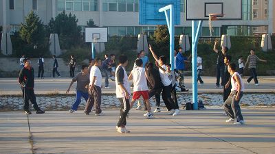 男子篮球队选拔赛在北门篮球场举行。