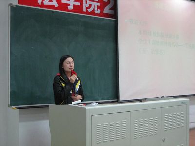 团委副书记邹阳师哥和学生会秘书处处长马文飞师姐分别以“学生工作中的主观意识”和“秘书性工作”为主题,从工作意识和素质的培养开始,讲到学生工作中应注意的事项和自己做学生工作的经验和心得,不失幽默的话语引起了学生干部们阵阵的笑声。