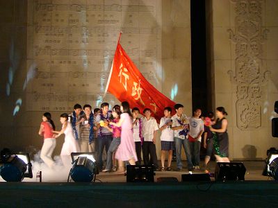 晚6:30随着悠扬的提琴声响起,毕业歌会正式开始。行政管理班集体合唱的“送别”很快将大家带入了离别的情绪。歌会分三个片段,分别是忆同学少年、道同窗友谊、看明朝辉煌。一曲曲带有浓重的校园情怀和离别意境地歌曲使即将离开母校的同学们不时心绪激荡,哽咽难支。随着歌会的进行,广场周围聚集了越来越多的陌生朋友,他们亦被同学们的真情而深深感染,直到歌会结束,广场周围始终围满了热情的观众。道一声母校“珍重”,说一句同学“走好”。一首“祝福”,祝愿在艰难中坚强跋涉的极速赛车 明朝更辉煌,祝愿曾经悉心教诲我们的恩师身体健康,祝愿即将奔赴工作岗位的同学实现人生梦想。伴随着“祝福”的曲调结束,歌会画上圆满句号。
