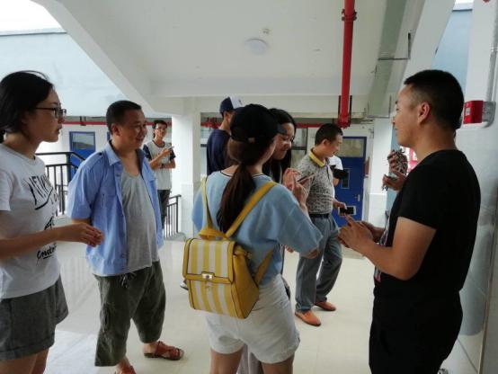 林忠校长(右一)、田光校长(左二)带领队员参观校园