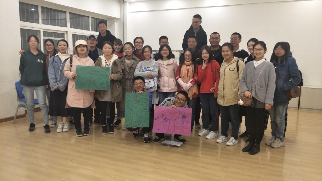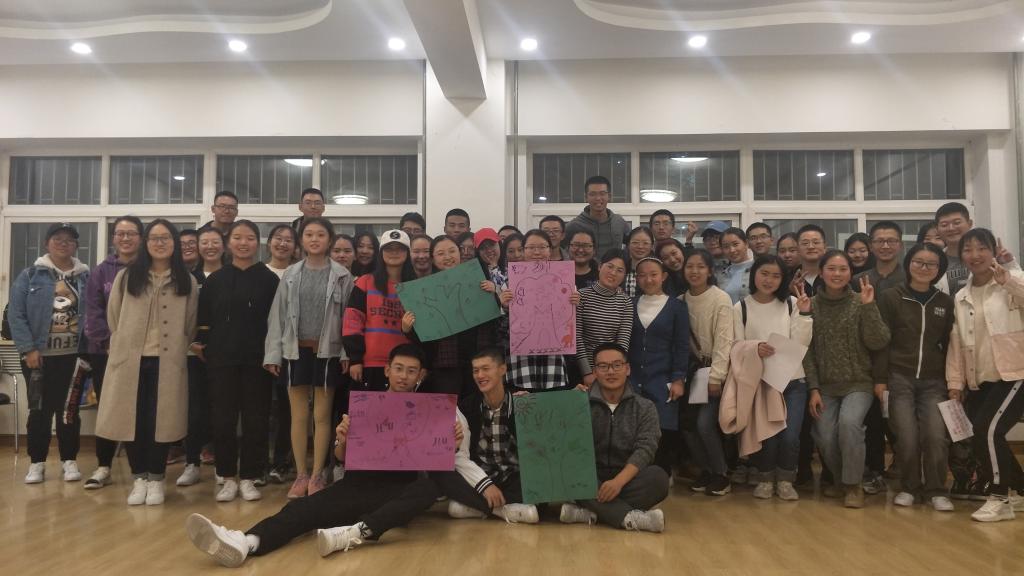活动开始正式开始前由李萍简要介绍了活动内容,同学们被随机分为若干小组,依次进行“一分钟鼓掌”、“我知道”、“信任之旅”、“集体登陆”、“人椅破冰”等游戏。这些小游戏或旨在引导同学们客观认识自己并制定合理目标,或旨在加深同学间的了解,或旨在促进同学们合作配合……在游戏过程中,同学们热情高涨,积极参与,现场气氛热烈。最后,同学们在纸上画出了对大学生活的向往并绘制了属于集体的团体树。