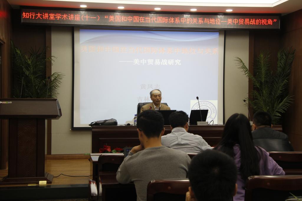 国际政治学系黄凤志教授作为主讲嘉宾,主题为“美国和中国在当代国际体系中的关系与地位——美中贸易战的视角”。院学工办主任、本科生辅导员刘洋和本科生、研究生七十余人参加了本期讲座。本期讲座由薛涛同学(2017级本科生)主持。