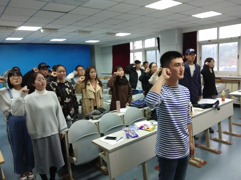 在团支书的带领下,5班全体同学重温了入团仪式。青春誓言,高昂雄浑,表达了同学们对共青团组织的无限向往和为团组织增光添彩的豪迈激情。为此,我们高校学子,更应谨言慎行,以身作则,抵制不良之风。摒弃官气,心存志气,不负初心,莫失莫忘。(图文:宋佳麒 责编:大学生媒体中心通讯员王菲 黄娟)