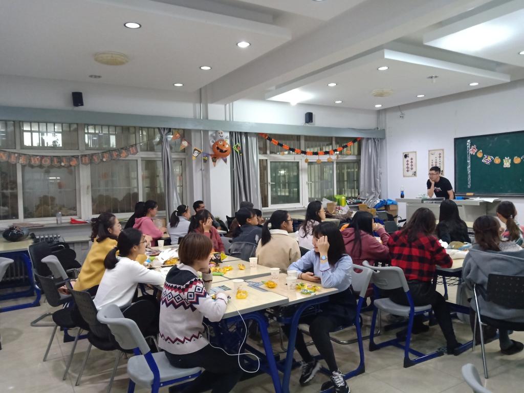 外语协会在经信教学楼C101室举办了以万圣节为主题的英语角活动。共有20余名同学参加了本次活动,其中包括数名留学生。