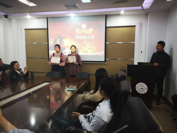 在 “积极分子颁奖”环节中,闫重阳等七名积极参与班级活动的同学得到了表彰。希望其他同学能以他们为榜样,积极参与班级活动。其间,还有同学对评奖计分制度提出了建议:“积分应该一个月清空一次以保证公平”,得到了全体同学的一致赞同。
