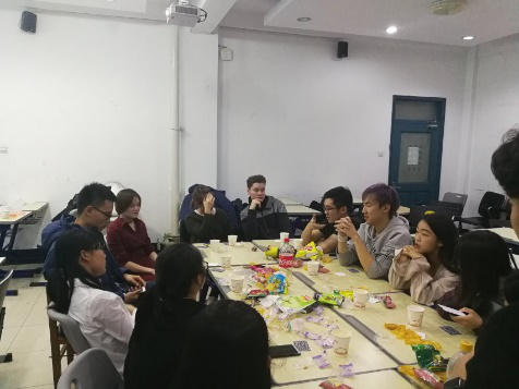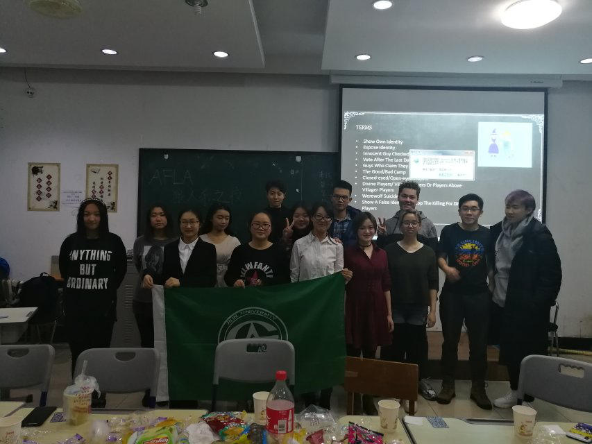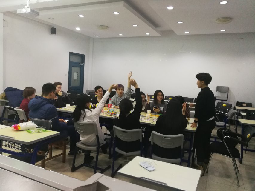 外语协会于2018年12月2日在经信教学楼C101教室举办了以“狼人杀”为主题的英语角活动。本次活动特别邀请了三位分别来自韩国和瑞典的留学生。