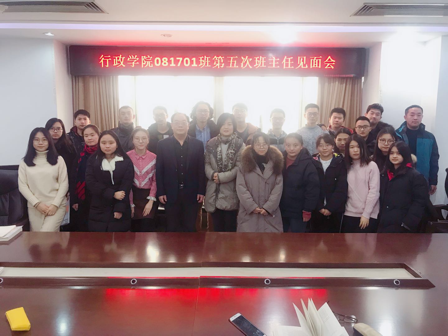 081701班于12月21日上午在东荣大厦1214室举行了第五次班主任见面会,班主任老师张贤明教授、薛洁教授出席了本次见面会。班长孟从华同学担任此次见面会主持。