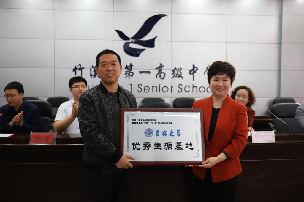 优秀生源基地”共建协议,向两所高中授予了基地牌匾,并分别举行了专场招生宣传讲座。