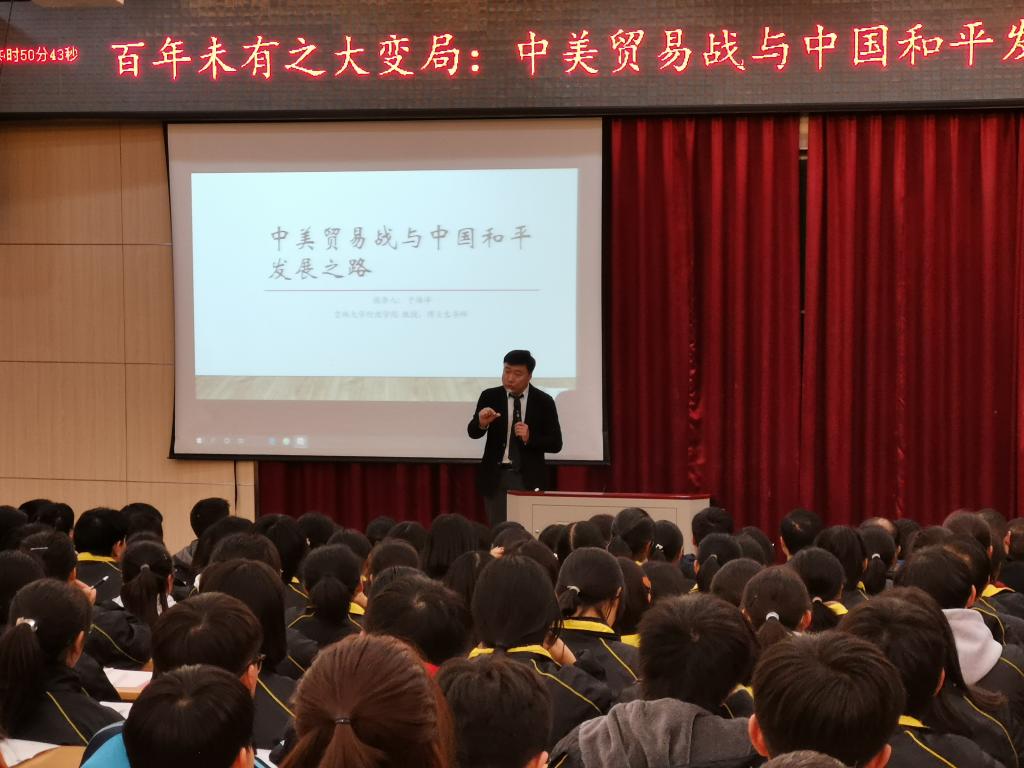 概述宣讲后,做了题为“百年未有之大变局:中美贸易战与中国和平发展之路”的专场学术报告。