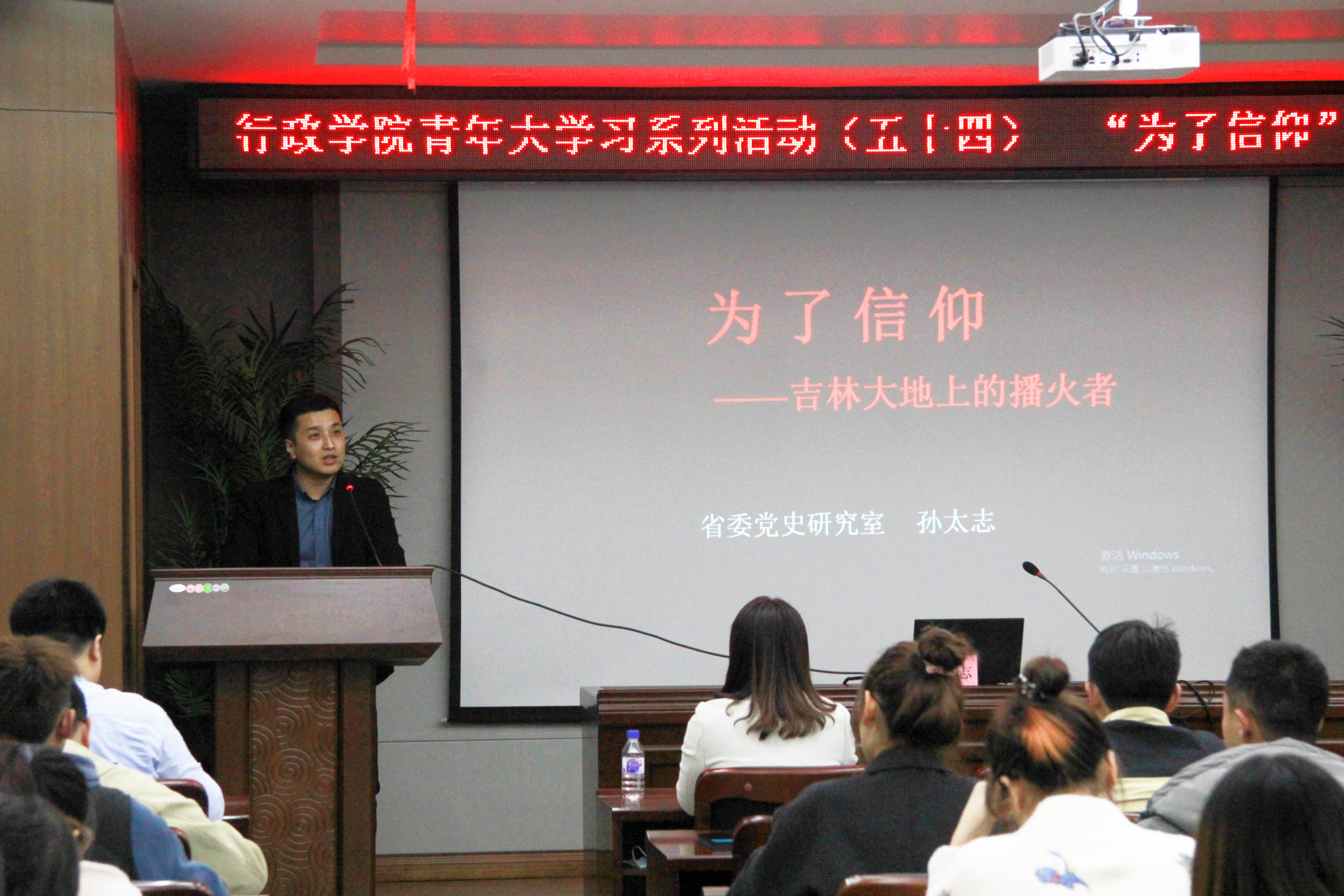团委于3月24日在东荣大厦B303室举办“为了信仰——吉林大地上的播火者”专题党课。省委党史研究室专家孙太志作为特邀嘉宾到场授课,院党委副书记兼副院长史慕华出席,辅导员刘洋主持会议。极速赛车