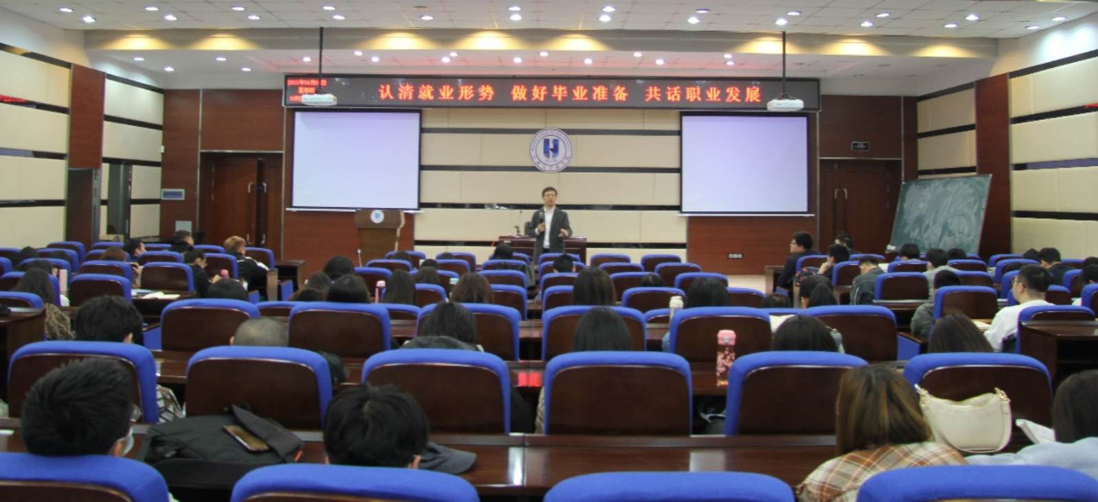 2021届毕业生和其它年级学生代表讲授了就业专题思政课。