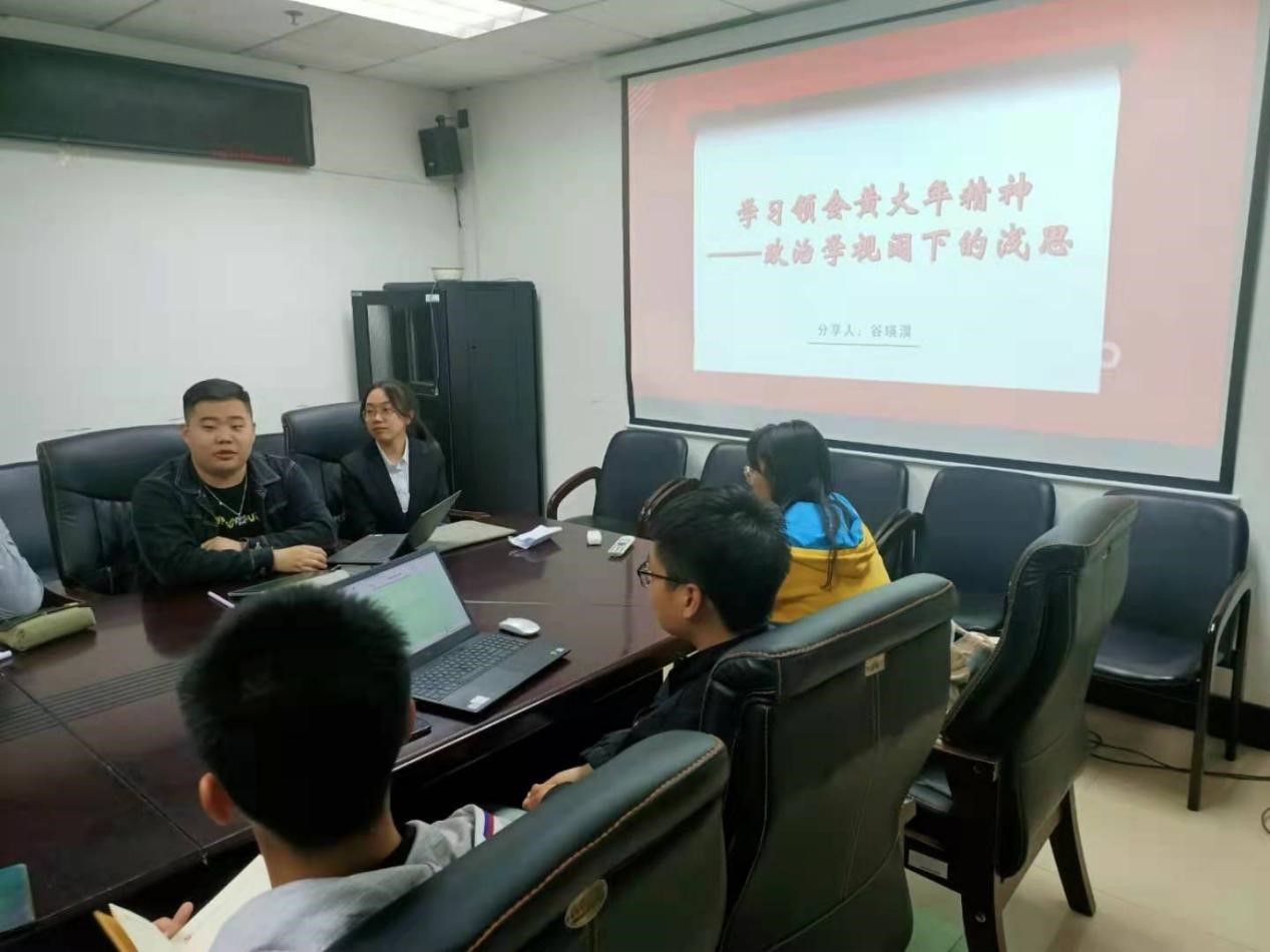 活动伊始,与会人员通过文字与视频材料深入了解了黄大年老师的学术背景及爱国情怀。随后,谷瑛淏从共同体、自我与身份的政治学学科视角论述了学习黄大年精神的现实意义,同时表示坚定践行黄大年精神的决心。随后,青年学习班(第三期)学员围绕主题踊跃分享自身感悟。李子荣(2020级本科生)从集体主义视角赞颂以黄大年为代表的顶尖海归科学家的爱国奉献情操。怀子阳(2020级本科生)结合参观黄大年纪念室的经历,表示青年学生要用专业知识为国家解决现实问题。李剑文(2020级本科生)就黄大年同志对何为成功的认识以价值选择与自我身份认同视角进行阐述,指出当下大学生应该学会为集体创造价值。最后,王世亨(2017级本科生)进行总结发言,从吉大学子和共产党人两重身份进行阐释,分享了对党性教育活动的重要性的认识。