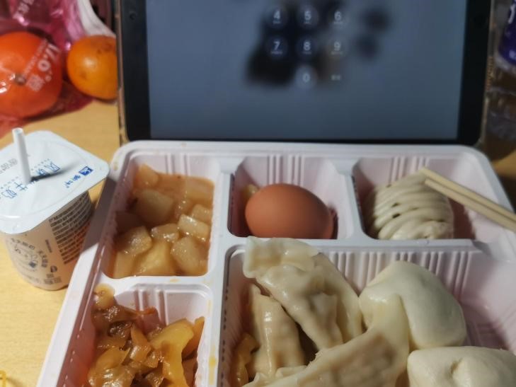20:00,志愿者们一天的工作基本结束。夜阑人静,难得闲暇,轻松温馨的电视剧,配上同样来自校外人士爱心捐赠的方便面,就着囤下的饮品,在与家人或室友几番谈笑、几句闲聊间,志愿者们一日的劳累与疲惫便一扫而光。