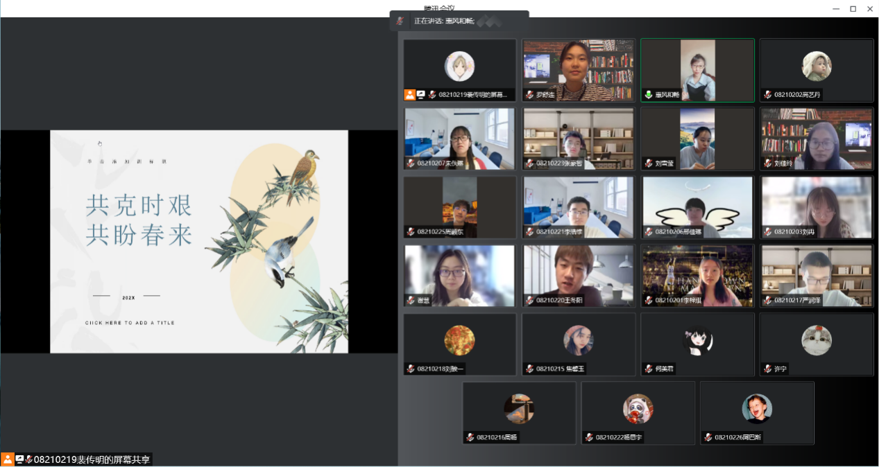 2021级各班陆续开展以“共抗疫情,我们在一起”为主题的第五期线上主题教育班会。