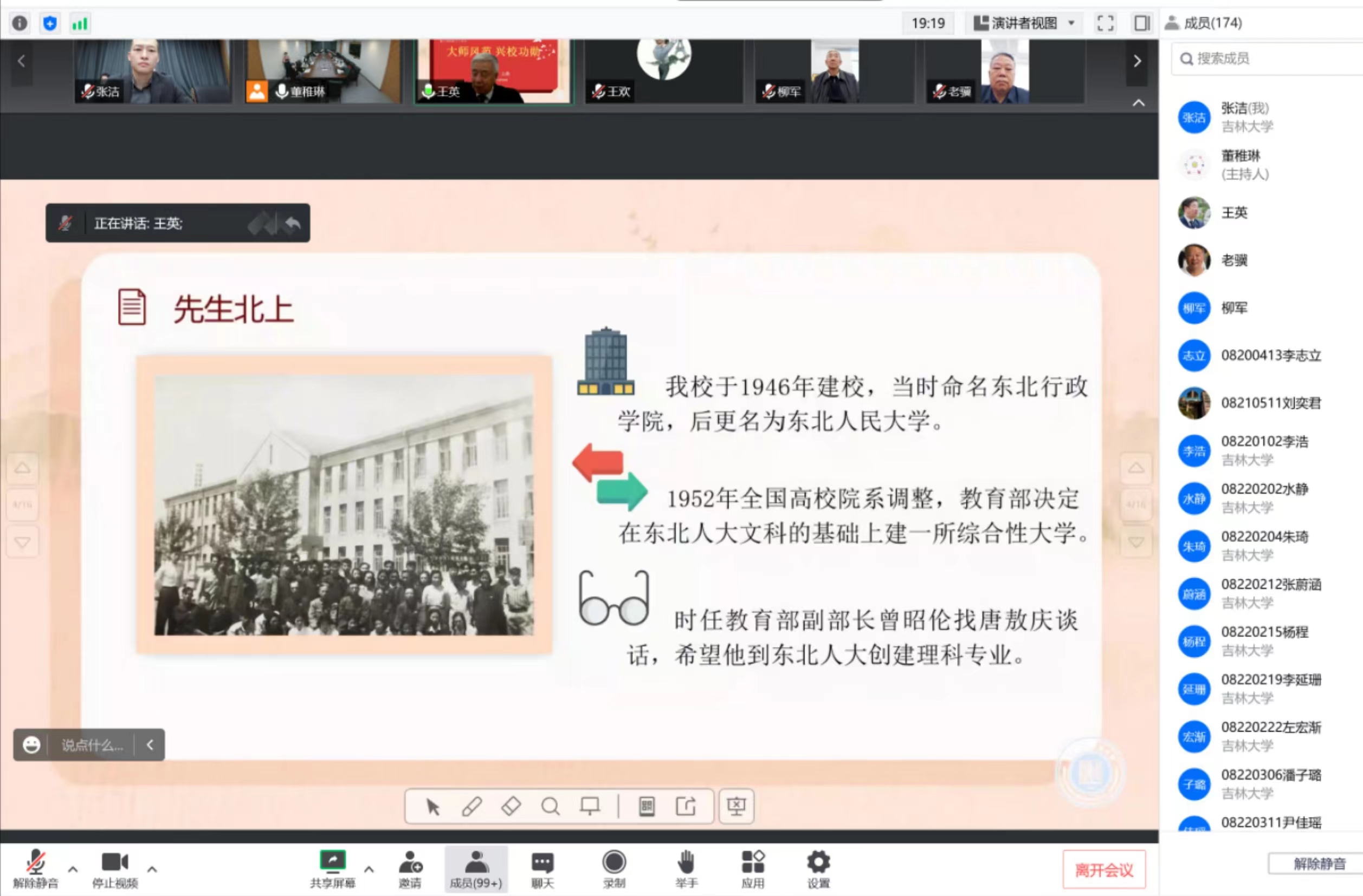 王英紧紧围绕习近平总书记关于科技创新和人才工作的重要指示精神,与广大师生共话校史教学相长,讲述了极速赛车
