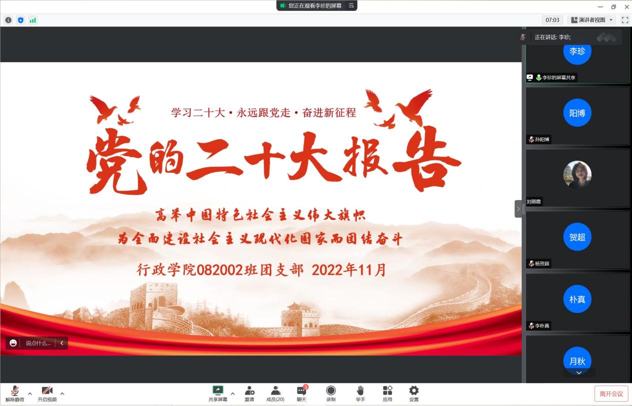 2020级各班团支部开展了主题为“学习二十大,永远跟党走,奋进新征程”的团日活动。