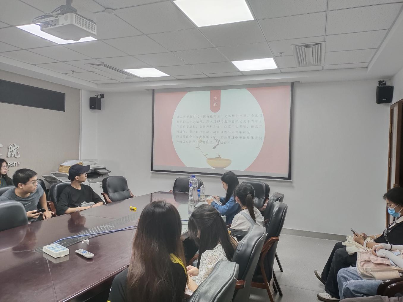 本次团日活动包括学习解读、交流解惑、总结收获三个环节。在学习解读环节,主讲人陈艺尹(2022级本科生)带领同学们一起阅读学习了阿东同志在中国共青团第十九次代表大会上的报告。报告简要展现了新时代中国共青团的伟大成就、旺盛生命力与光明未来,同学们从报告中深刻地感受到了团员青年的时代责任与使命担当。