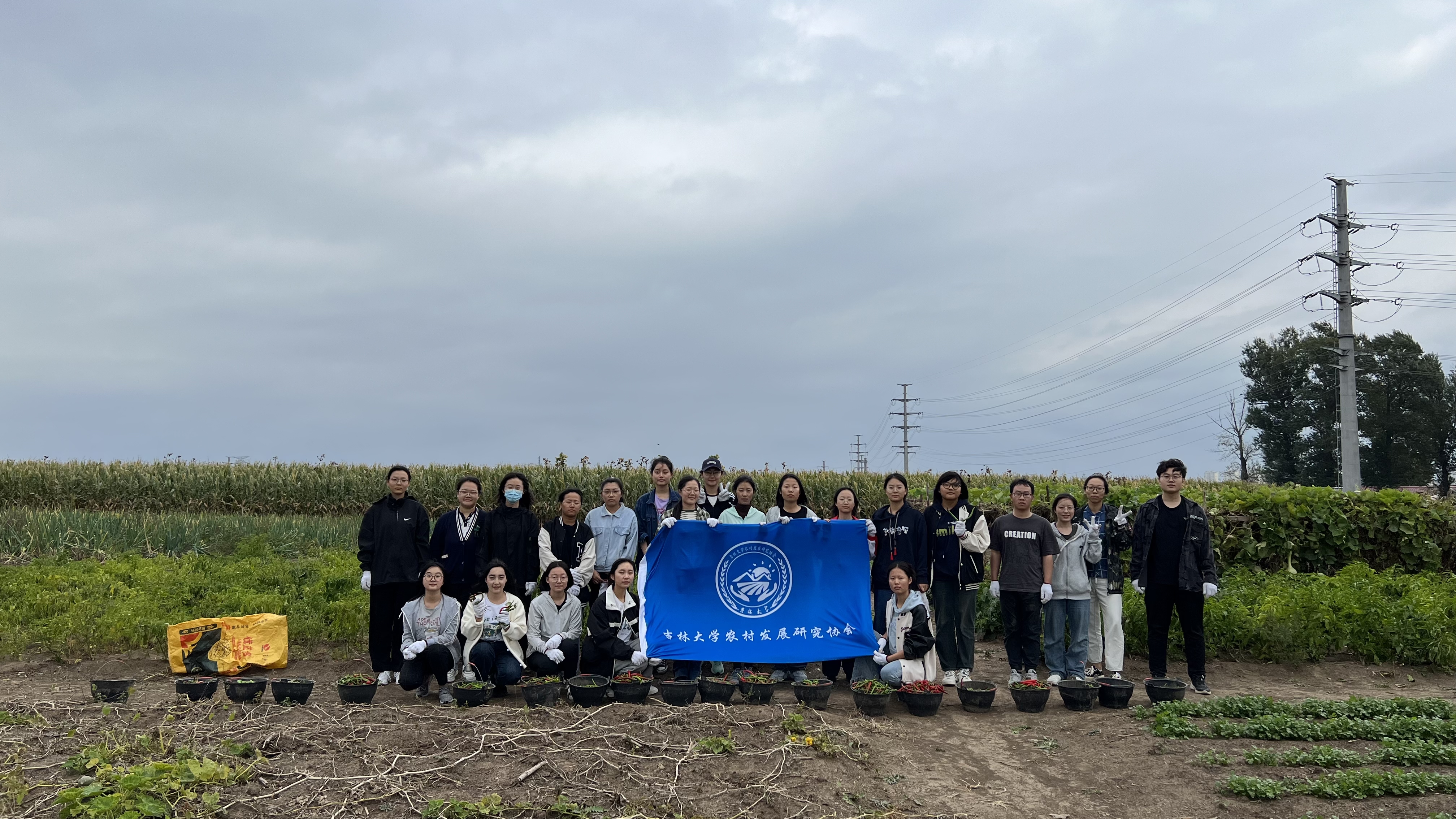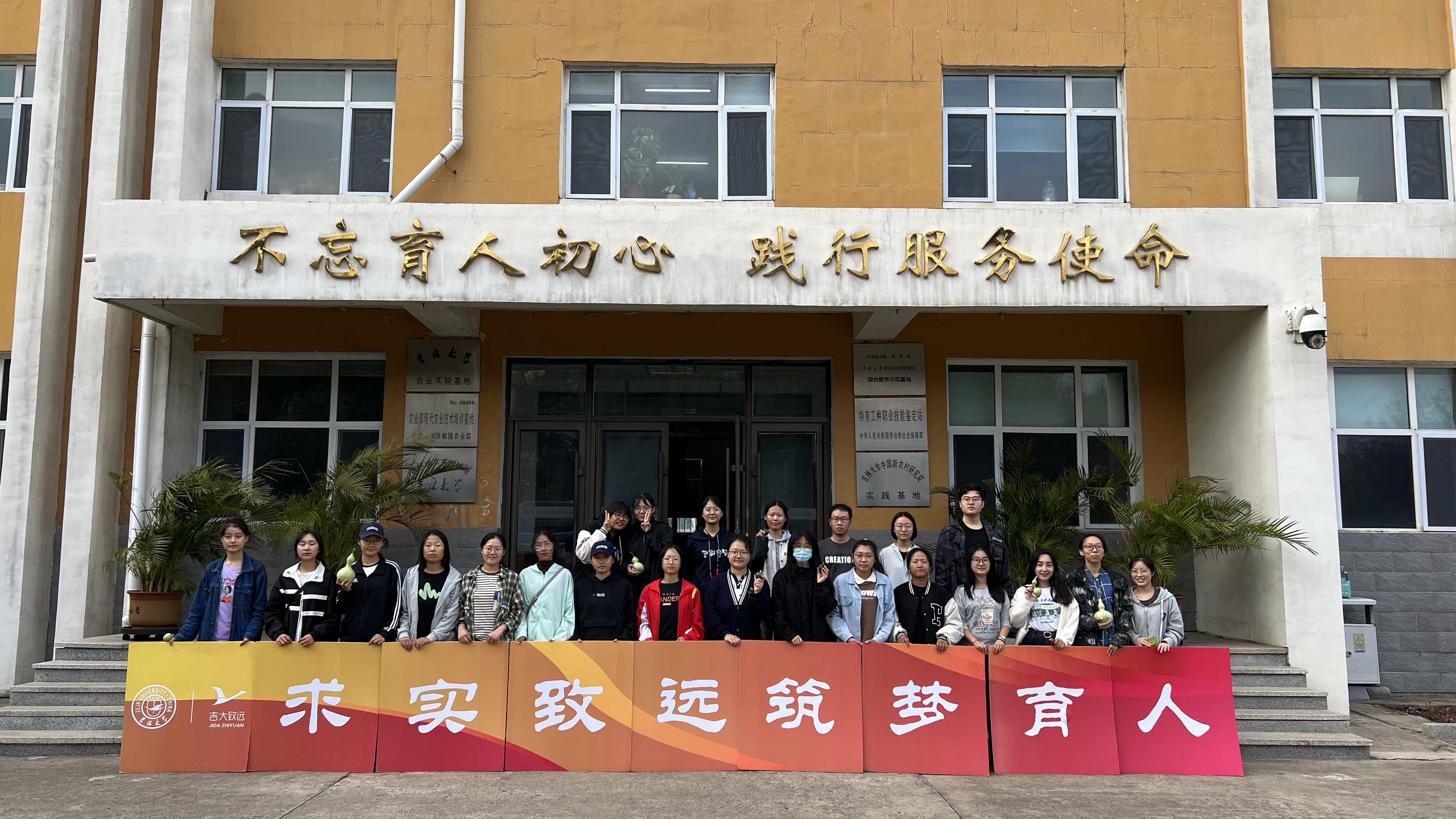 农业实验基地。到达目的地后,同学们首先接受了农业实验基地工作人员的安全指导和装备分配,随后分成若干小组,开始了采摘辣椒、采摘葫芦、清理地块等农业劳动,体验农耕的艰辛和乐趣。最后,卫玉欣(2021级本科生)对本次实践活动进行总结,鼓励同学们珍惜粮食资源,尊重农民的辛苦劳动,为乡村振兴贡献自己的力量。