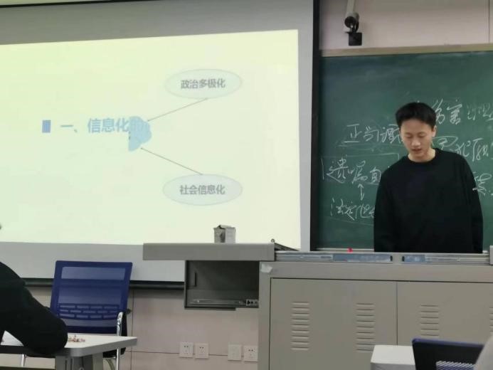 第二部分,集体学习。在本环节中,陈俊秀(2021级本科生)为同学们详细介绍了习近平总书记《建设开放包容、互联互通、共同发展的世界》重要演讲的主要内容,而后全班同学就此篇重要文章进行了深入解读与学习。在此环节中,同学们了解到,“一带一路”倡议坚持共商共建共享,开辟了各国交往新路径,搭建起国际合作的新框架,汇集着人类共同发展的最大公约数。
