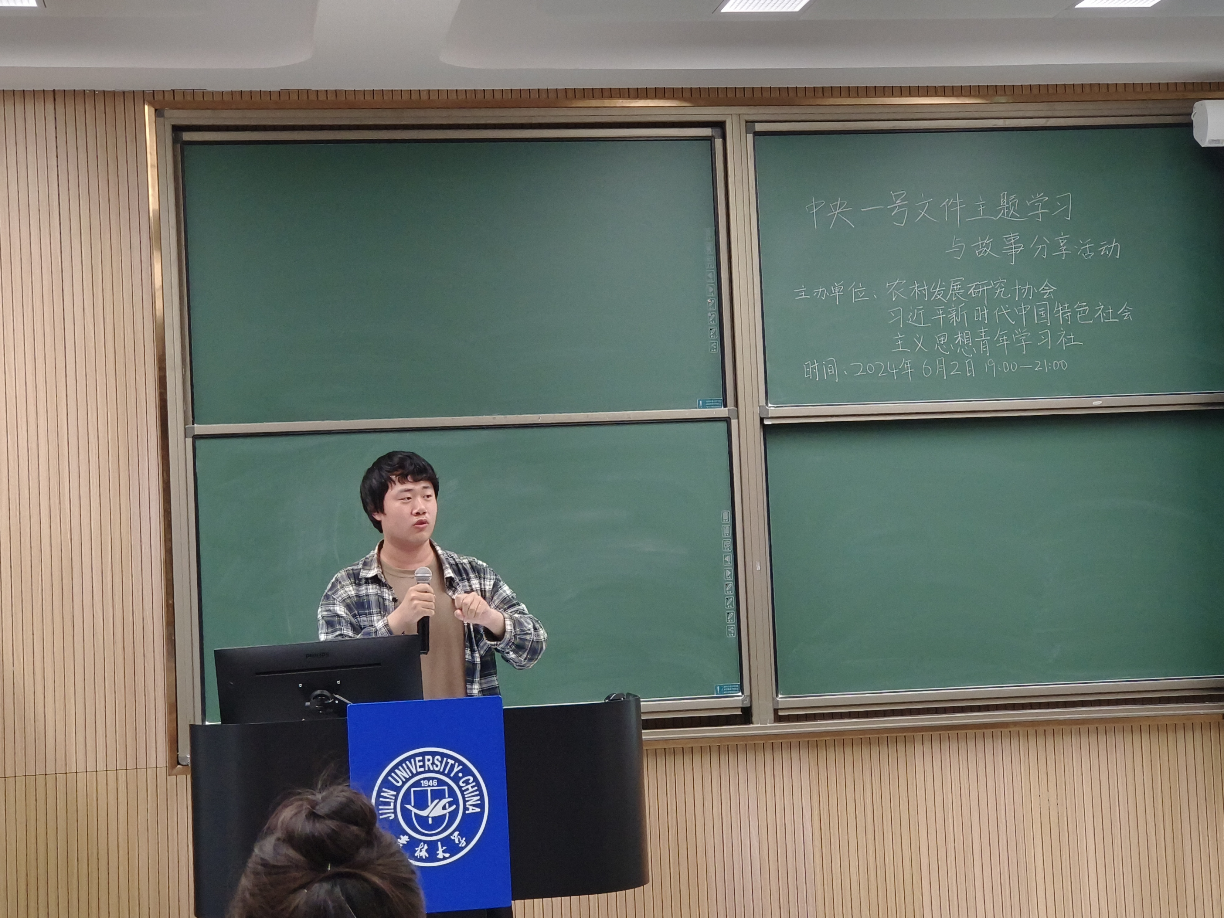 农村发展研究协会于2024年6月2日晚在中心校区逸夫楼一阶举办“中央一号文件”主题学习与故事分享活动,主题学习活动刘玉馨(2023级本科生)主持。
