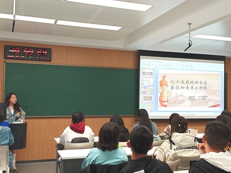 分享感悟环节,胡曼祺(2024级本科生)从自身学习工作经历出发,结合材料内容率先发言,她谈到,这75年的辉煌成就,是中国共产党团结带领人民共同奋斗、实现中国梦的有力证明,充分展现了中国特色社会主义的强大生命力和中国特色社会主义道路的历史正确性。随后大家进行了热烈的讨论与交流,同学们的思想在交流中得到了进一步地启迪。