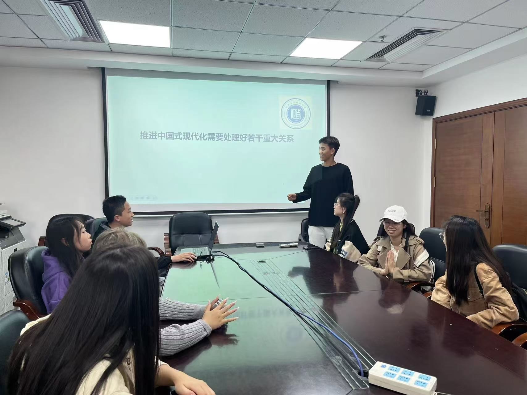 研讨交流环节,同学们围绕党的二十届三中全会精神的核心内容、新时代青年的责任与担当以及如何将会议精神转化为实际行动等话题展开了深入探讨。杨雪同学(2022级本科生)分享了自己对会议精神的理解,认为新时代青年应该积极投身国家建设,为实现中华民族伟大复兴的中国梦而贡献力量。杨昊喆同学(2022级本科生)则结合所学专业,谈到了如何在自己的领域内贯彻会议精神,推动科技创新和社会发展。通过互动交流,同学们进一步加深了对党的二十届三中全会精神的理解,也增强了责任感和使命感。