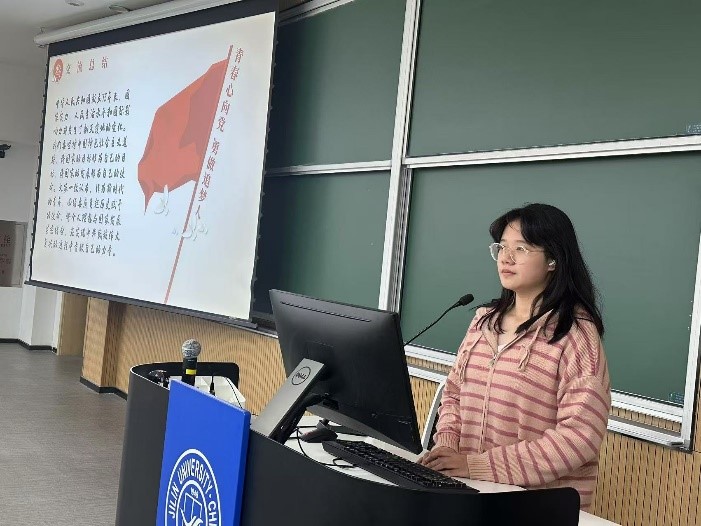 理论学习部分,崔景琦(2023级本科生)带领同学们学习习近平总书记在二十届三中全会上的重要讲话精神,特别强调了全面深化改革的系统性和科学方法,分析了新时代中国特色社会主义的制度成果。