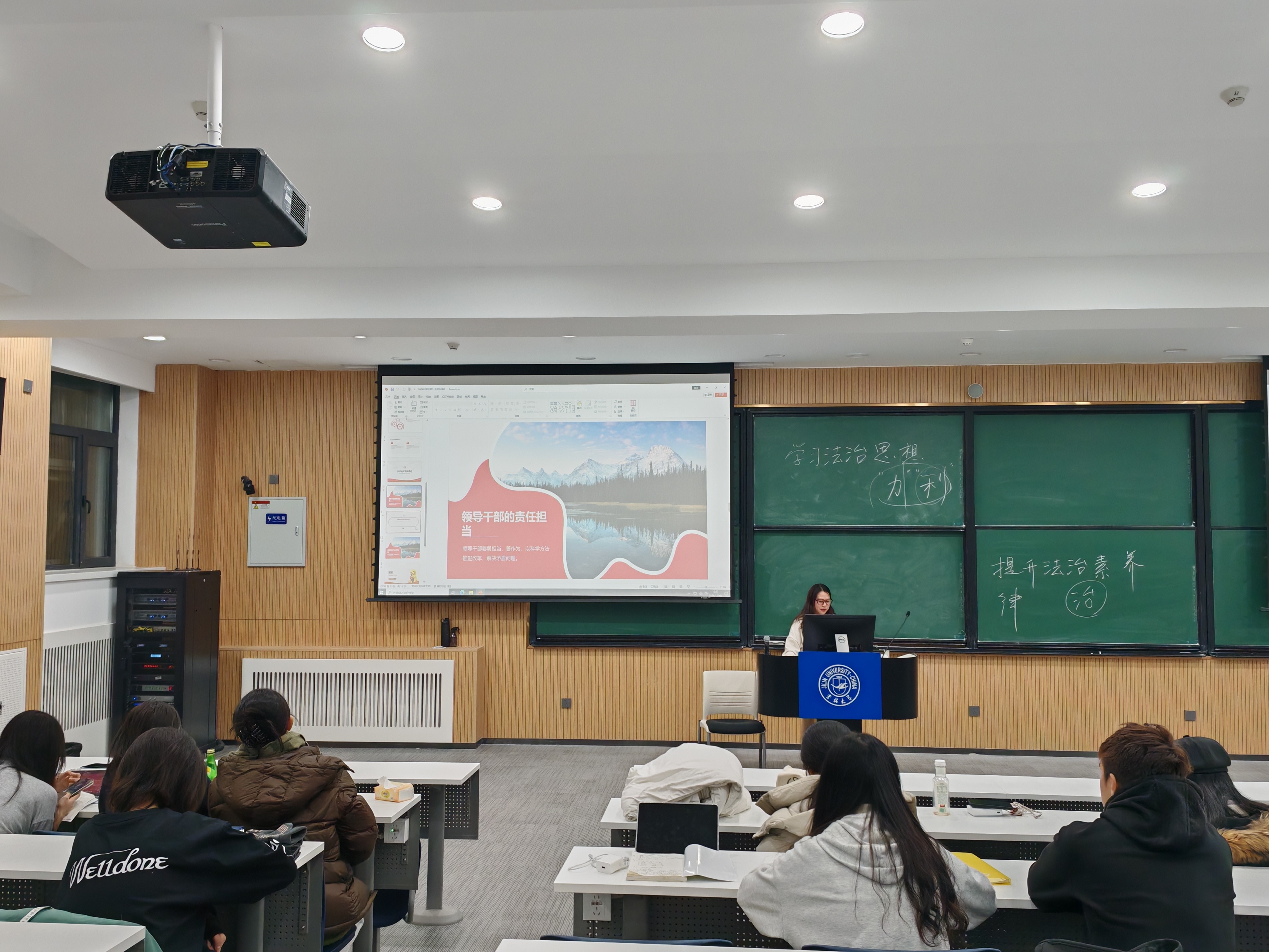 材料分享环节,安柏琪(2024级本科生)介绍守正创新改革原则,强调 “有方向的,有原则的改革”,以科学的方法推动改革,从法治的角度讲述法治在推动改革中的重要作用。同学们就改革与法治的关系展开交流与讨论,提出自己关于法治在改革中的作用的理解,加深了对新时代改革方略的理解。