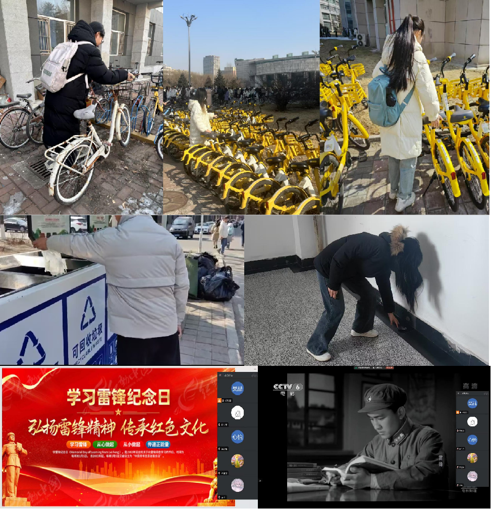 组织志愿者化身环保小卫士,进行校园清洁,并且对校园内随意停放的自行车进行摆放,积极践行雷锋精神,用实际行动帮助他人、回馈校园;晚7时,志愿者们参与线上观影,回顾雷锋同志平凡而伟大的一生,全方位、深层次的理解雷锋精神。同时,极速赛车