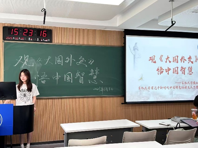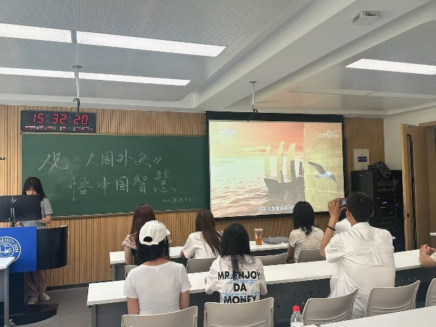活动伊始,主持人介绍了主办社团及活动目的,强调在全化复杂形势下,青年学习中国特色大国外交理念的重要意义,并简要解读《大国外交》纪录片的创作背景与核心内容,引导同学们聚焦中国外交成就与智慧。随后,全场同学共同观看纪录片,沉浸式感受中国在全球治理、国际合作、大国交往中的担当与作为,直观体会习近平外交思想的实践伟力。