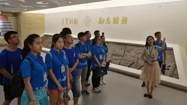 接着,营员同学们在曲畅竹老师的带领下游览了校园,自东门出发,经过五月花广场、图书馆、行政楼、体育馆、经信教学楼最终到达鼎新楼并参观了校史馆。