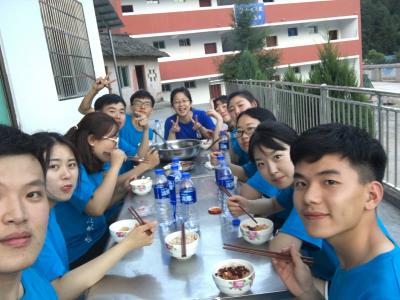 支教团的目的地——金西完小学位于贵州省铜仁市松桃苗族自治县金龙村。群山之中的校园吸吮着大山的气息,现代化的痕迹寥寥。落后的教学条件虽然引人关注,但更加触动支教团师生的是孩子们眼神里透出的单纯、好奇和勃勃生气。一个多月的细致准备为教学工作的顺利进行打下了良好基础,但是较大的年级跨度以及孩子们参差不齐的学习基础让支教团师生感到责任重大,同时也为孩子们的学习情况担心非常。他们意识到地区相对落后的现状决定了只有努力让孩子们自己把学习重视起来,才能更加进步,才能拥有更多人生的选择。