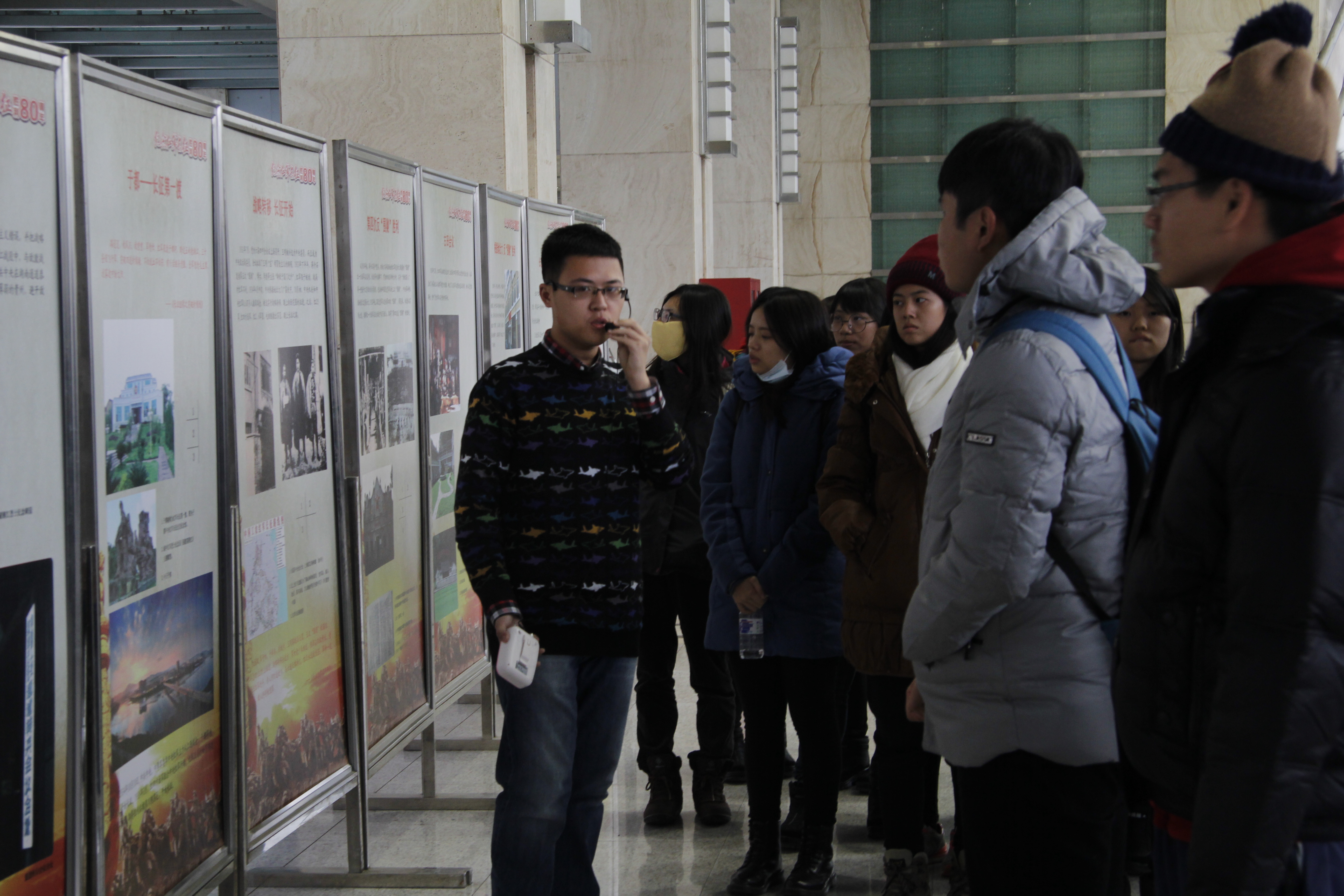 的对外访问经验,希望能与台湾高校加强学术访问和交流。会议结束后,冬令营师生在15级本科生周金霖的带领下来到东荣大厦一楼“纪念长征胜利80周年”长廊进行了参观并为大家做出了讲解。