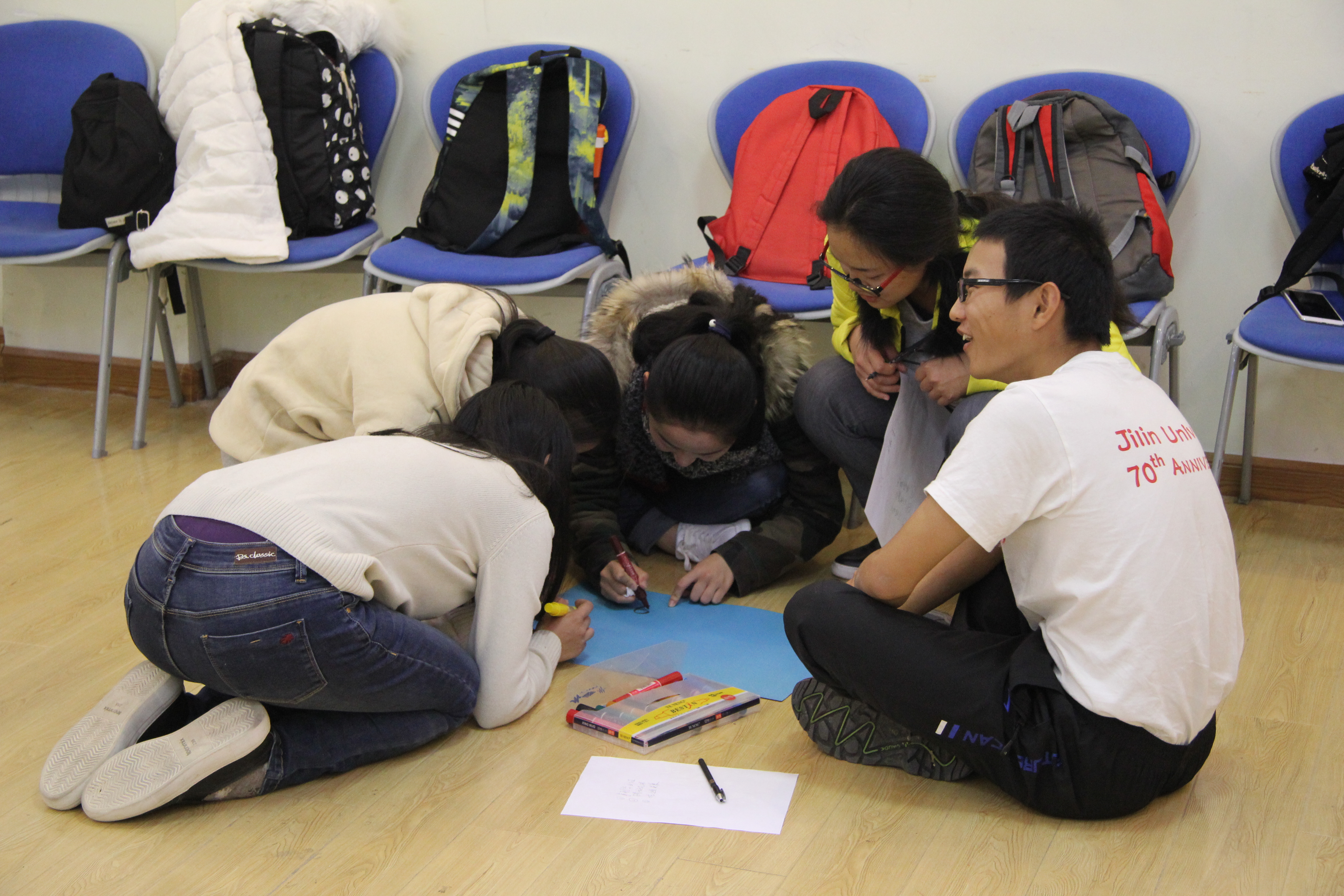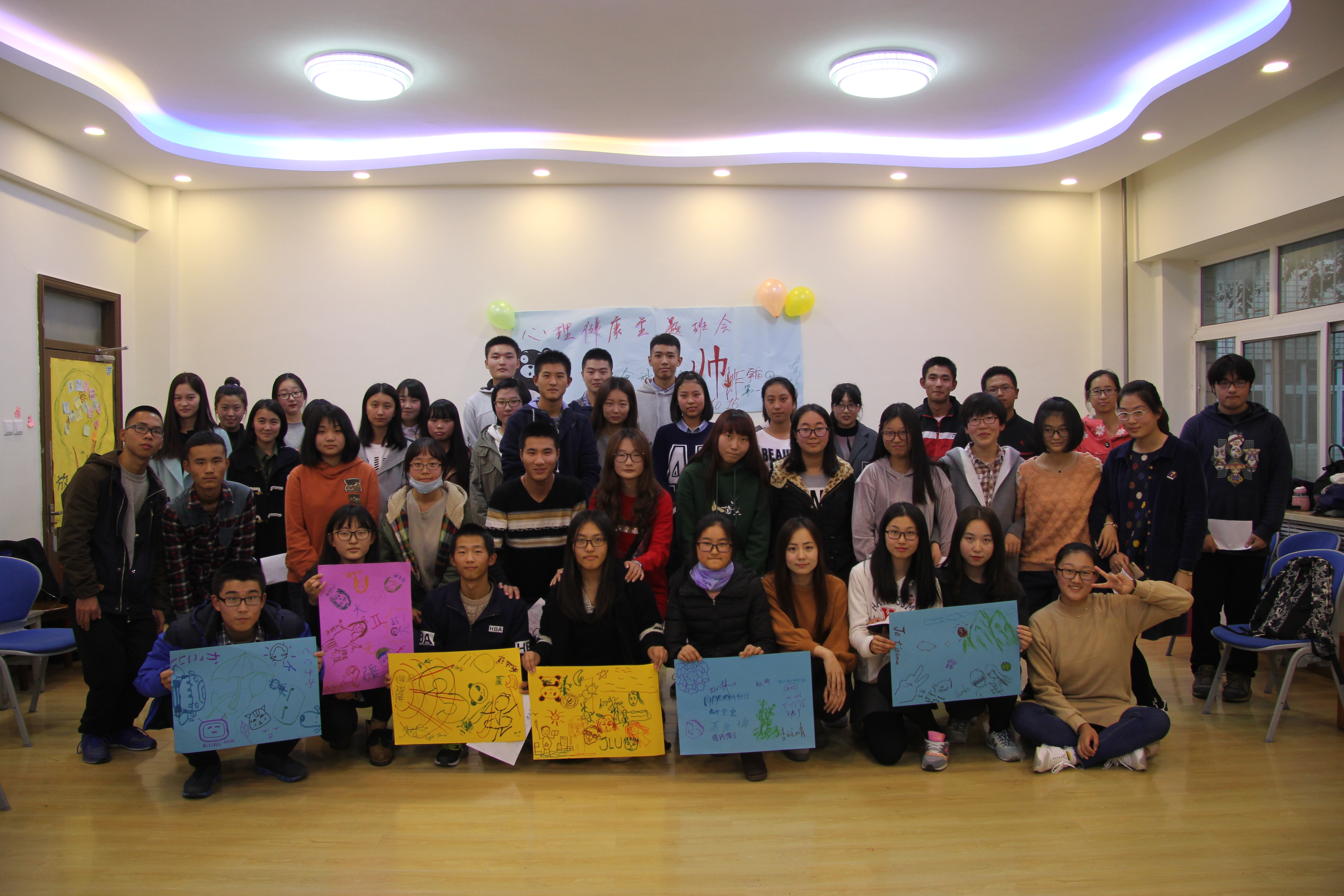 13时整心理辅导课准时开始,首先任延旭向在座学生介绍了本次活动的目的和流程。随后,参加活动的学生被随机分成了若干个小组,并在任延旭的主持下以小组为单位进行了信任之旅、集体登陆、人椅破冰等游戏项目。到场同学均积极参加各类游戏项目,通过游戏培养了彼此间的默契。最后,各小组内互相交换了对组内成员的印象与评价,抒写在大学期间的美好期望,并在海报上绘制了自己心中的蓝图。参加本次辅导课的学生按照专业分为三个批次分别进行活动,下午17时40分,所有批次的心理健康辅导课均圆满结束。