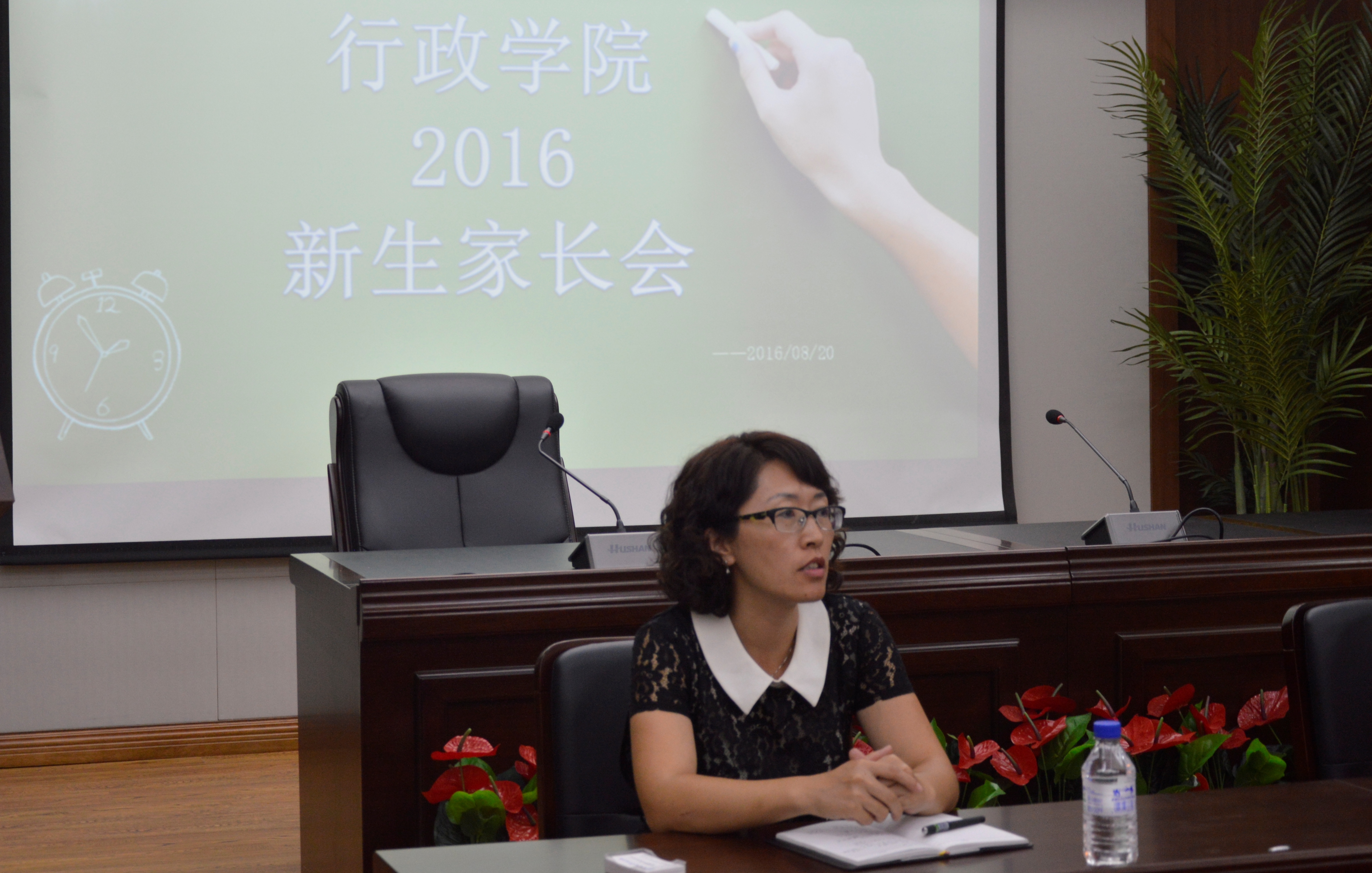 随后,辅导员曲畅竹向家长介绍了现阶段大一新生的住宿问题并向家长说明了今年的新生军训情况。15时许,2016年新生家长见面会顺利完成。
