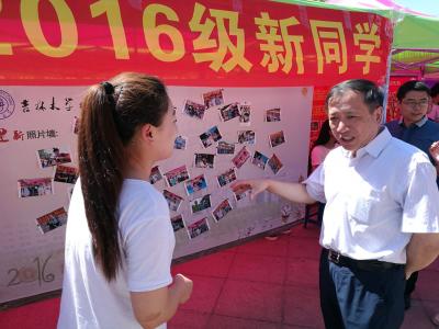 领导同样十分重视此次迎新工作。8月20日上午,校党委书记杨振斌、校长李元元以及其他校领导莅临迎新现场,看望新生及家长,并慰问了工作人员,对迎新工作的顺利开展给予了充分肯定。