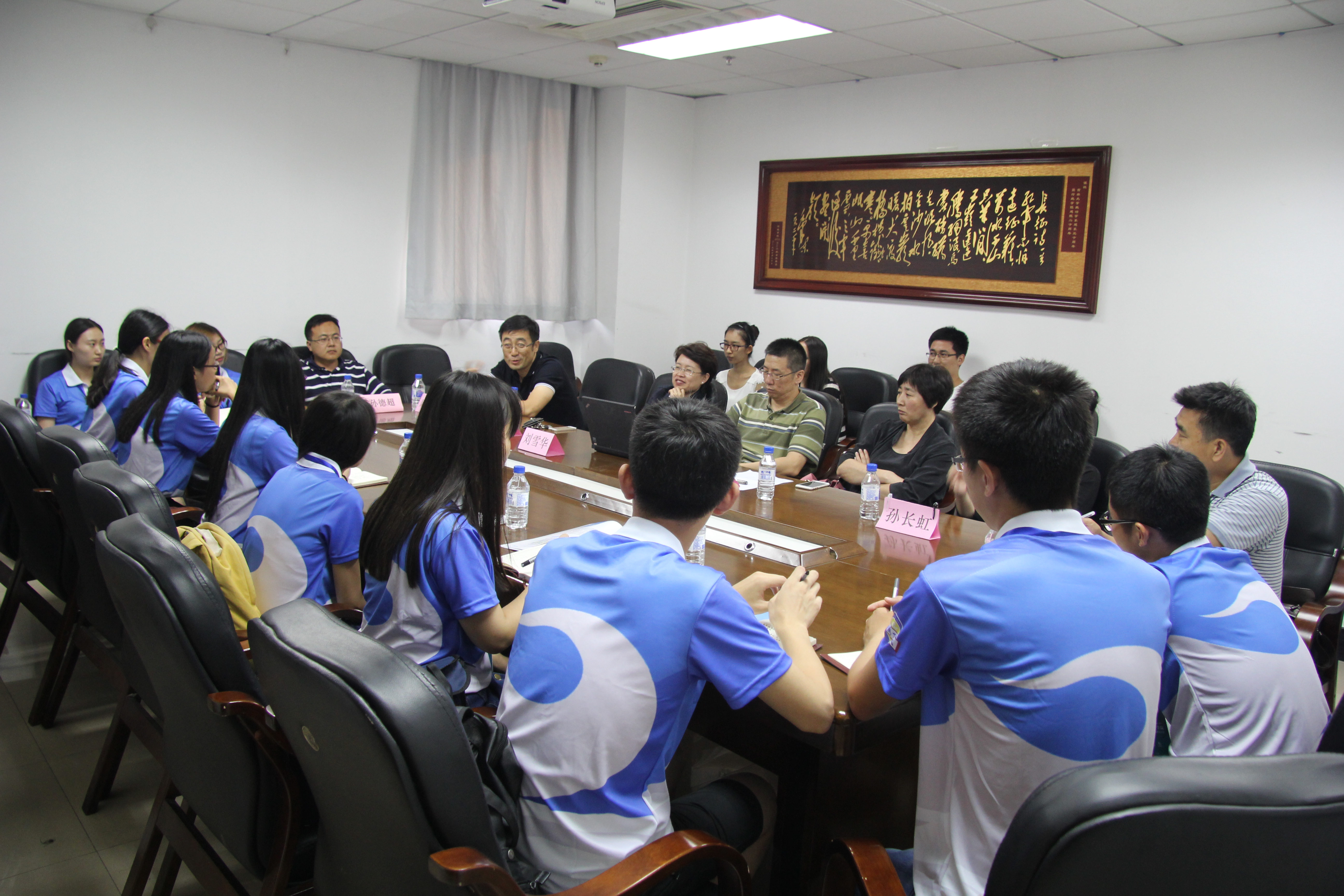 志愿者团队在长春卡斯顿酒店组织夏令营成员进行报道,并于下午6点于东荣大厦1203室、1204室、1214室分别举行了政治学系、国际政治学、行政管理学三个专业的师生见面会。