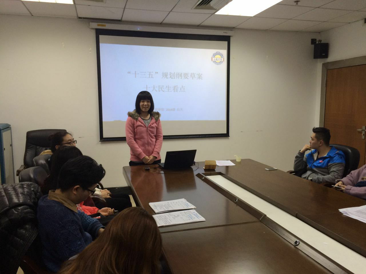 社团的慈善募捐活动提出了自己的想法和意见。随后,2014级毕昆从新颖的角度为大家解读了大数据下的两会。在大数据的分析下,两会中的民生关注热点主要集中于生态环境、食品安全等方面;而国外媒体则更关注中国的股市、货币政策等方面。此外,孙丽、李嘉琦、张玉、李京原、张文怡、白天、李文增也就两会热点问题发表了自己的见解。