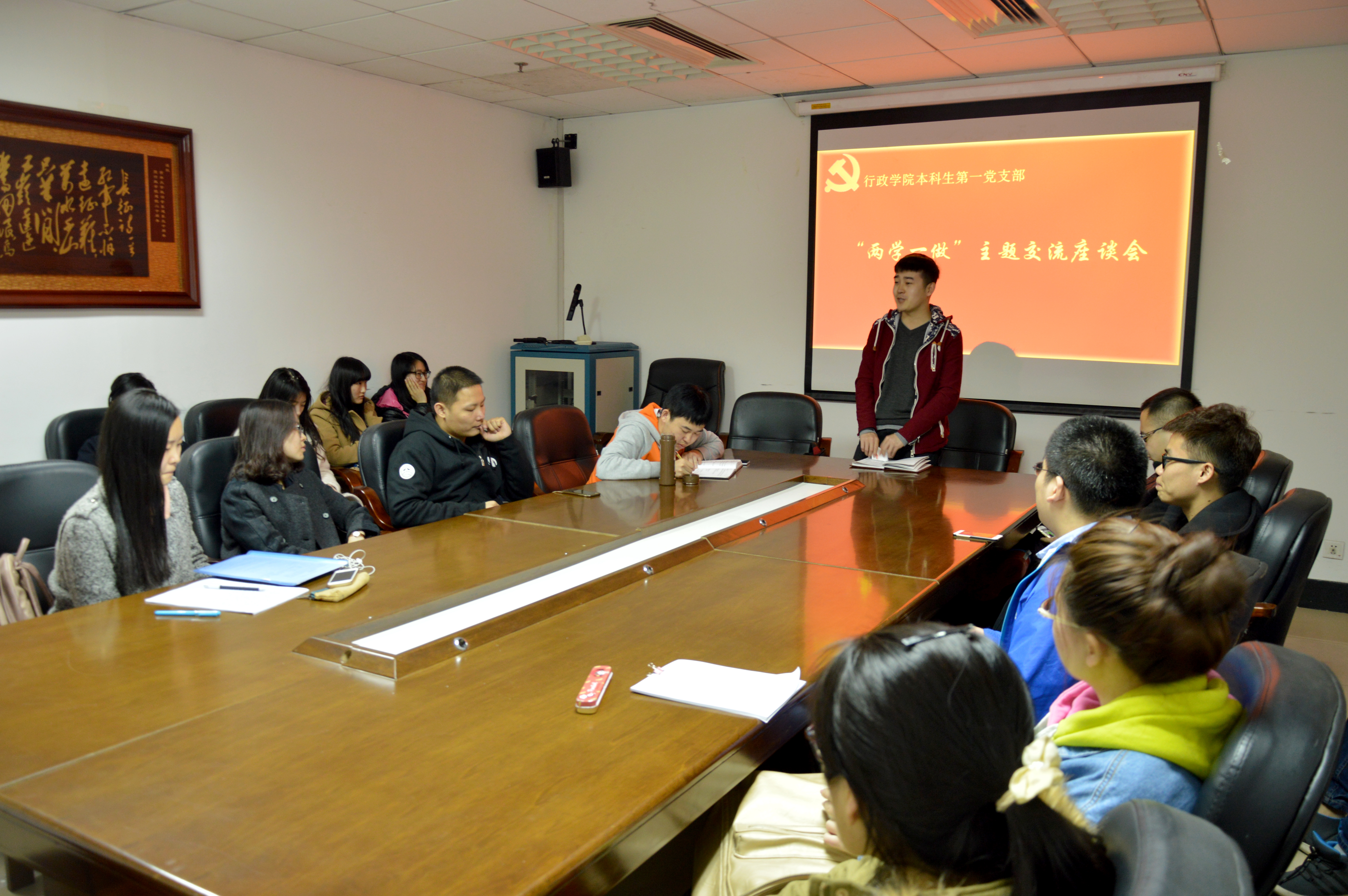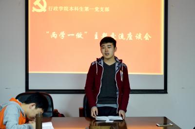 座谈会开始后,任建国先向与会人员传达了“两学一做”精神,安排了会议秩序并介绍了会议内容。首先进行的是本级党支部组织委员以及宣传委员的选举。选举以民主投票的方式进行,最终郝瑞琪和刘航宇分别以高票当选为2013级党支部组织委员和宣传委员。随后进行的主题交流,任建国首先讲述了自己这段时间学习党章、党史的感悟。他认为大学生党员要认清自己的身份,将为人民服务以及服从党的领导落实到具体实践中,大学生需要正确理解党的纲领与政府改革的关系,为实现中国梦做贡献。随后的自由发言中,党员孙诗琪率先发言。她认为我们大学生应该积极响应党中央的号召,用“三严三实”来规划自己,要帮助他人,争创先进,在党的领导下变得更优秀。之后,郝瑞琪、刘航宇等同学分别发表了自己的见解。最后任建国在总结发言时强调:入党是一件严肃的事情,当我们成为一名党员时,心中就应该有党、有人民;社会很复杂,但党员要时刻清醒,知道应该做什么,不该做什么;要努力学习,端正态度,认真学习党章党律。