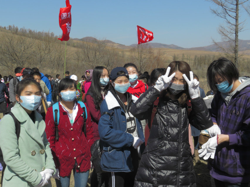 4月9日清晨,在政能量志愿者协会社长李文增的带领下,100多名志愿者乘着两辆大巴前往植树的目的地。由于村路日久失修,经过一个多小时的颠簸,志愿者终于到达了目的地马鞍山林场。山风呼啸,黄沙阵阵,极度恶劣的天气给志愿者植树带来了极大的挑战。经过了7个小时的努力,马鞍山一大片荒山又重新着上了一身浅浅的“绿装”。据不完全统计,志愿者这次大约在马鞍山共植树10000余株,受到了当地村民和工作人员的一致好评。