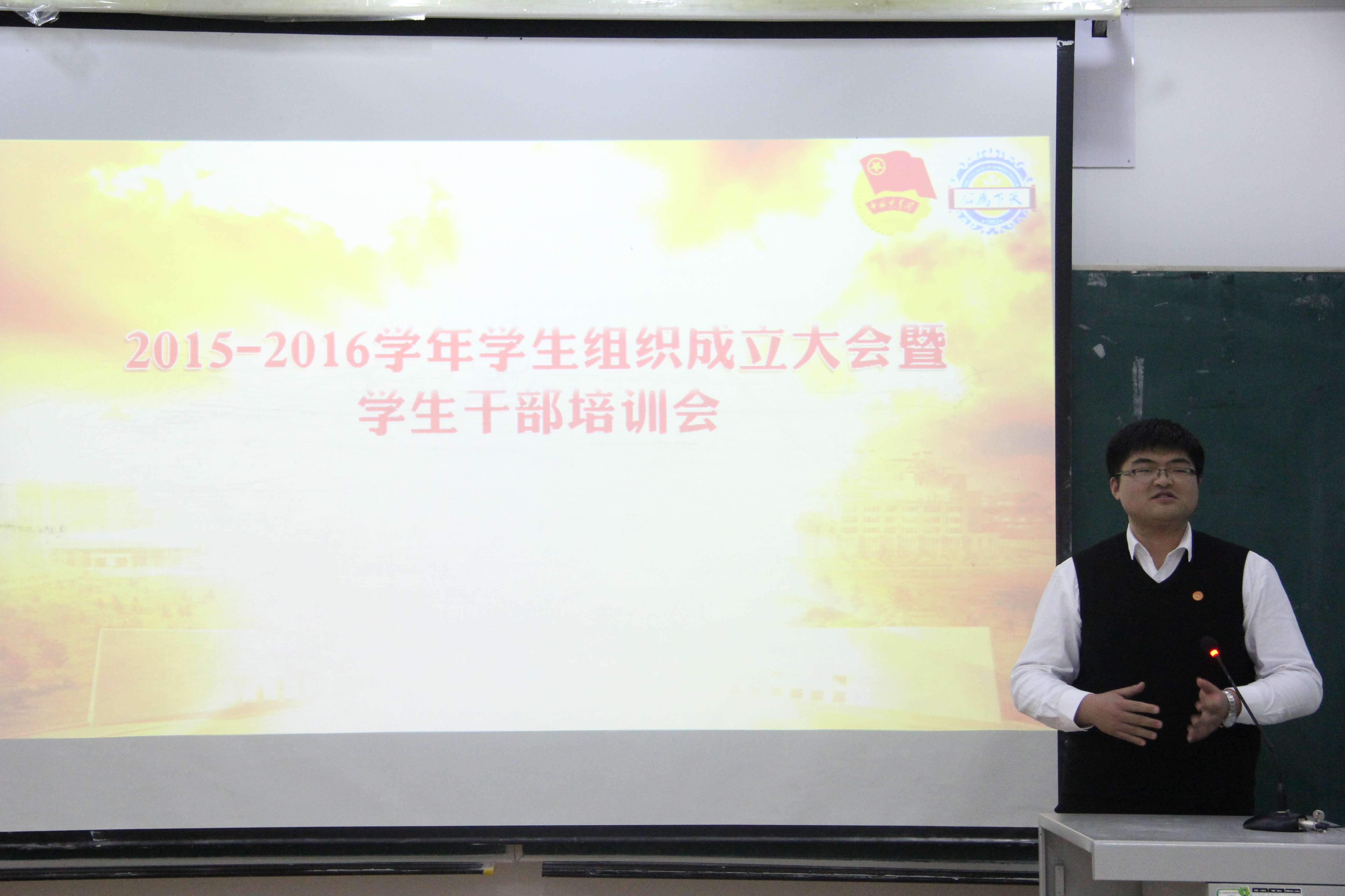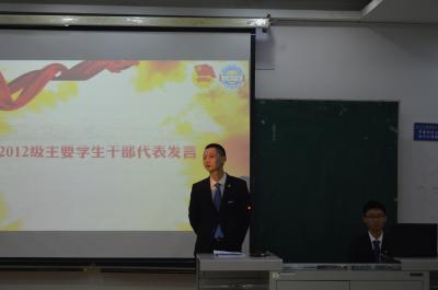 学生干部重要性和特殊性的思考,并鼓励同学们在大学期间抓住每次锻炼的机会为日后社会工作积累经验。伴随着同学们热烈的掌声,2015-2016学年学生组织成立大会暨学生干部培训会圆满结束。