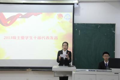 老师的培养和同学们的信任的同时,结合自身在校经历与生活,向在座同学分享了他所理解的大学生应具有的素质和使命。他提到,当代大学生必须树立责任意识与奋斗意识,在建立更高维度的统筹思维能力的同时,要把握高速发展的社会环境所提供的发展机遇,在大学生活的平台中发挥自己的才能,坚持到底、永不言弃。随后,学生会主席王雨萍(2013级)结合极速赛车